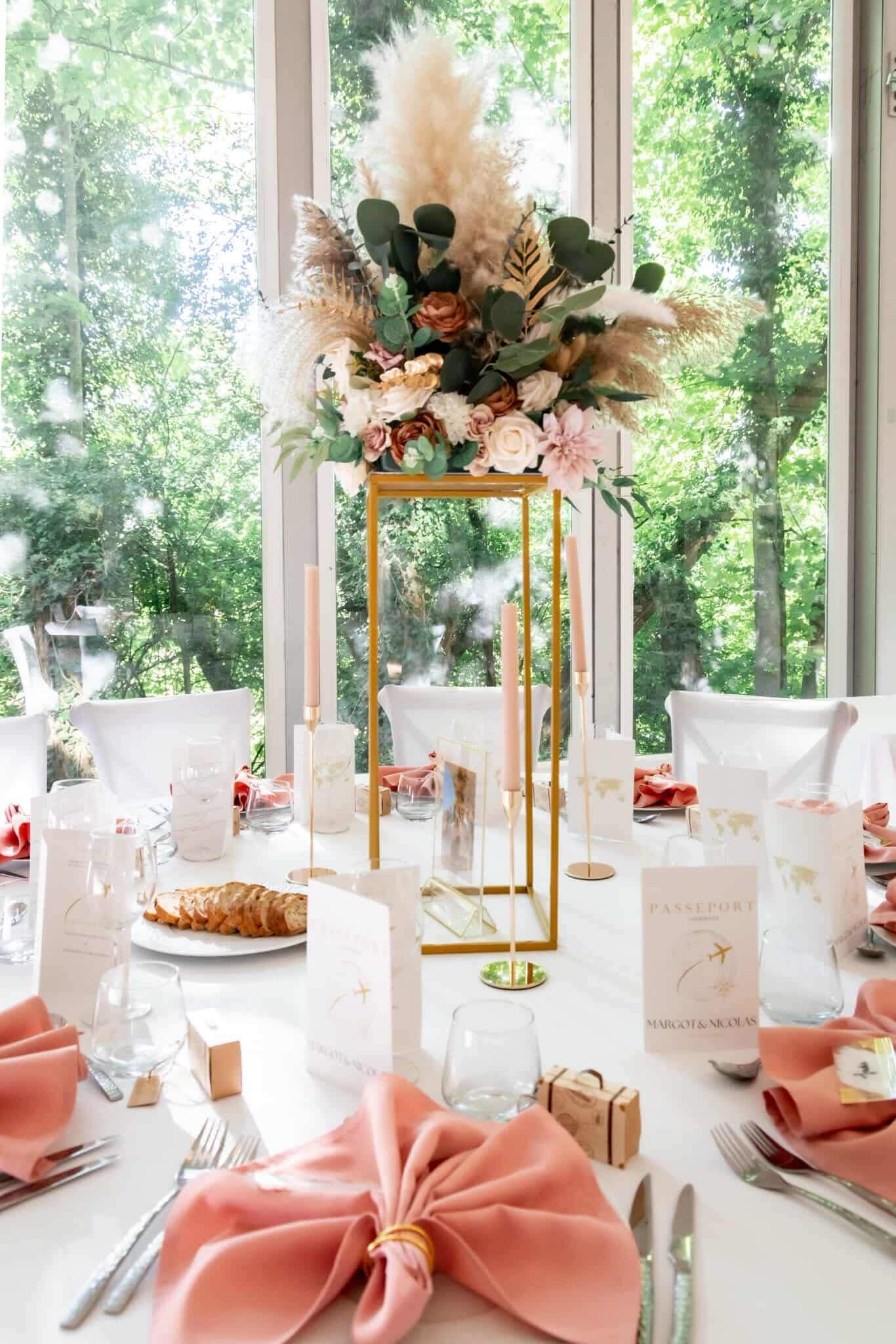 Le vase colonne doré pour des centres de tables élégants. D’une hauteur de 60 ou 80cm il ne gênera pas la vue des convives lorsqu’ils seront assis.